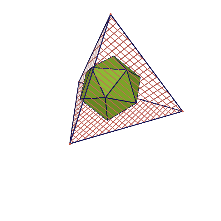| Tetrahedron divided in 4 equal parts 四面體分成四等份 |